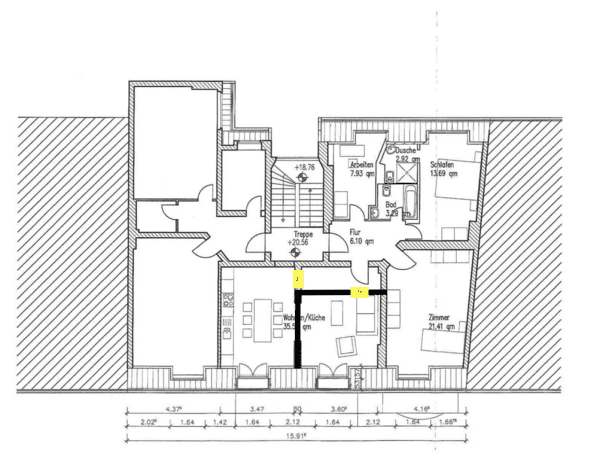 Unsere frisch sanierte 95qm große Wohnung im Dachgeschoss eines Mehrfamilienhauses bietet den perfekten Rahmen für ein gemütliches WG-Leben. Durch die Sanierung erstrahlt die gesamte Wohnung in neuem Glanz und überzeugt mit modernem Komfort.