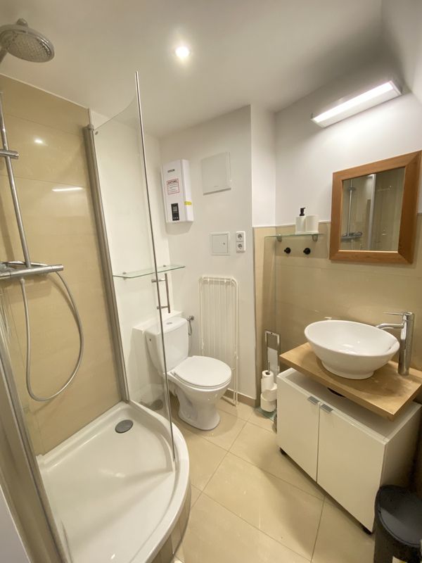 Neben der Küche gibt es ein gemeinsames Badezimmer, das ebenfalls modernisiert wurde und mit einer Dusche oder Badewanne ausgestattet ist.