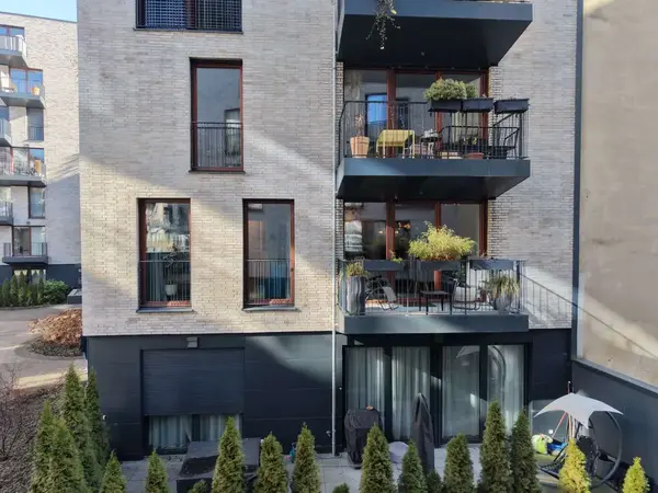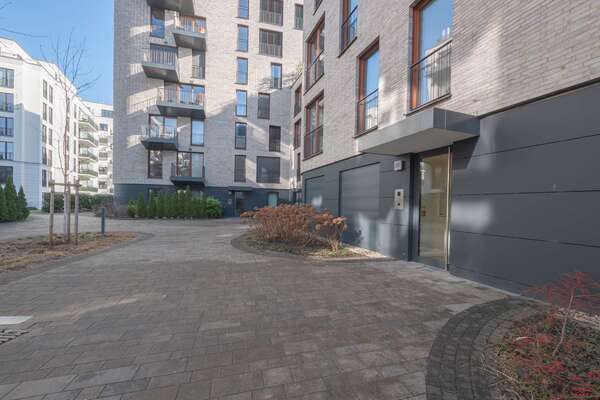 Das 2018 fertiggestellte Gebäude überzeugt durch eine klare, zeitlose Formensprache und eine hochwertige Klinkerfassade. Großzügige Fensterflächen sorgen für lichtdurchflutete Räume und schaffen eine offene, freundliche Wohnatmosphäre.
