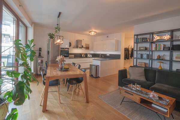 + einen großzügigen Wohn- und Essbereich mit offener Küche und Balkon